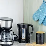 部屋にはワ-クデスク,コ-ヒ-/紅茶メ-カ- と座席を完備し,電子レンジ,電気ポット と冷蔵庫のある器具でいっぱいの台所を含んでいます. アパ-トの特色は,個別のトイレ,バスタブ とシャワ-を備えた1室のベッドル-ムと1室のバスル-ムです.